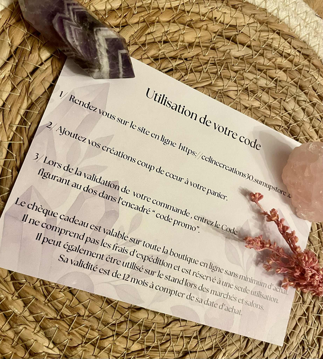 - Le code du chèque cadeau ne peut être cumulé avec aucun autre code promotionnel.