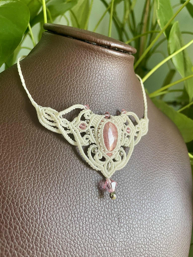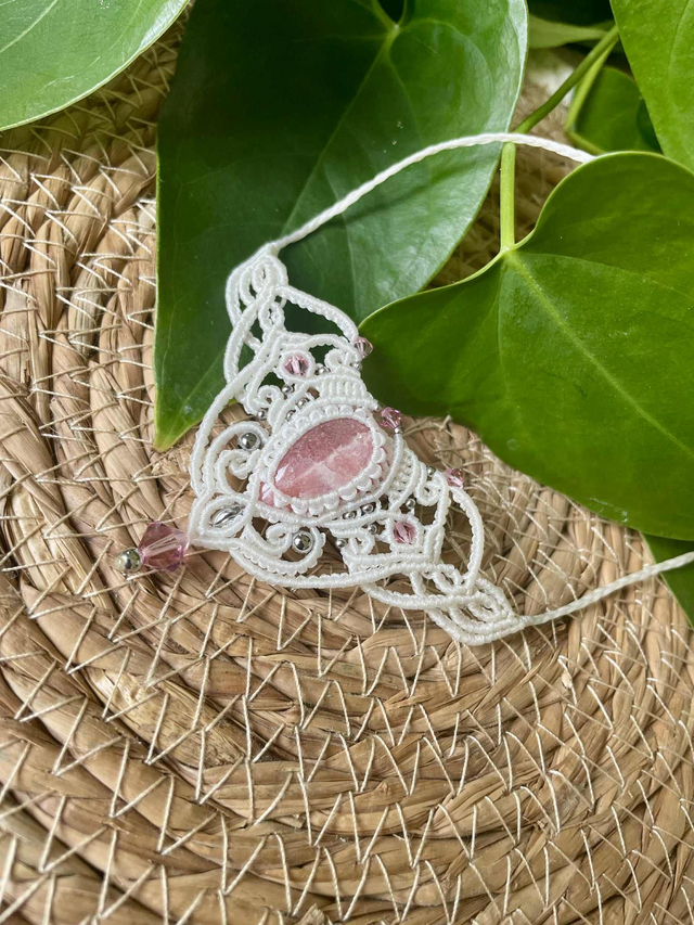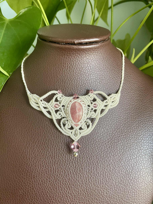 Collier tissé à la main , dans mon atelier du sud de la France avec la technique du micro macramé .