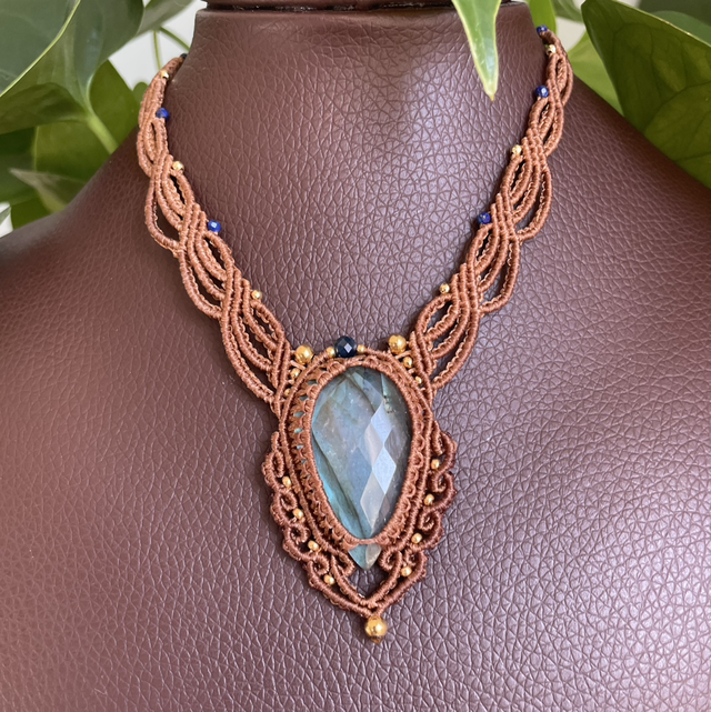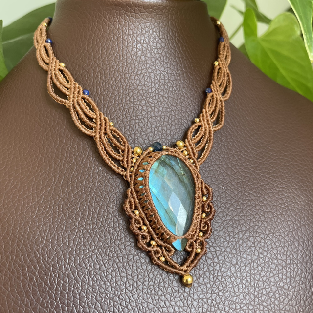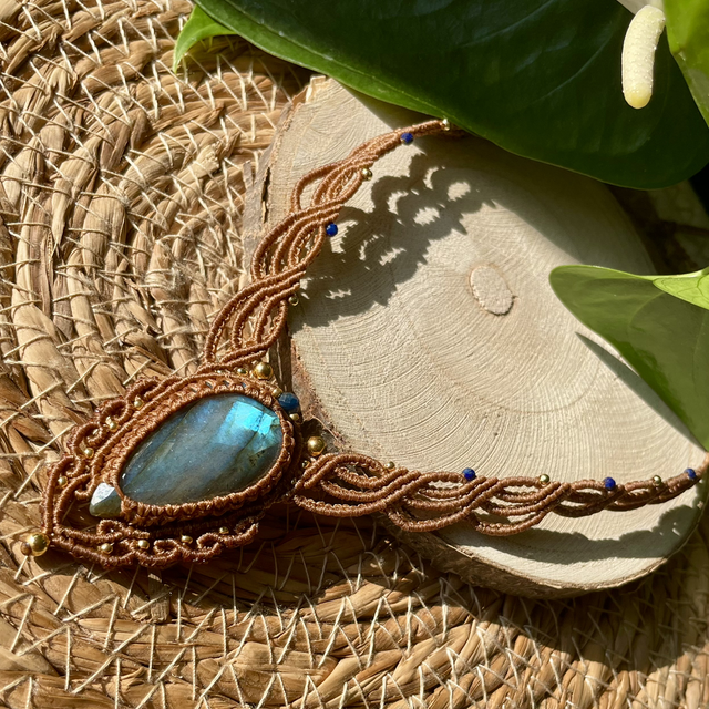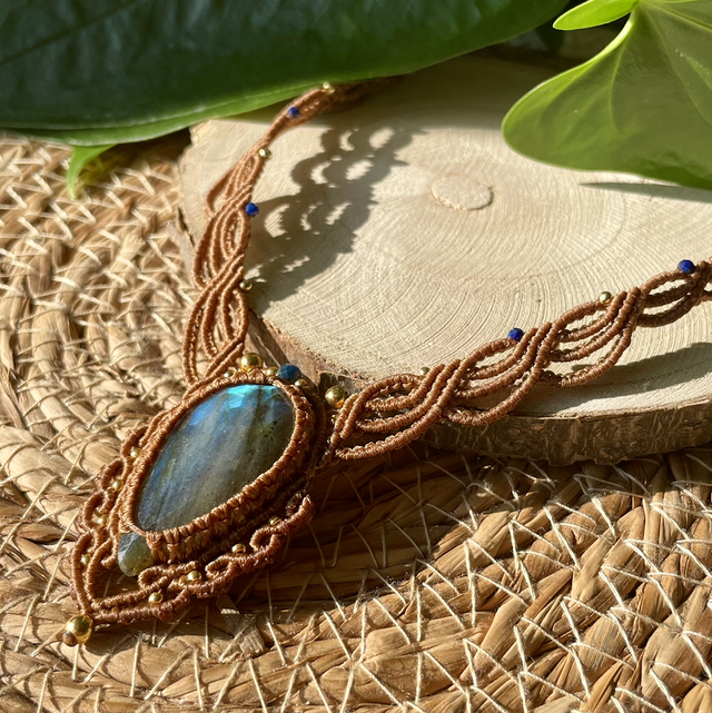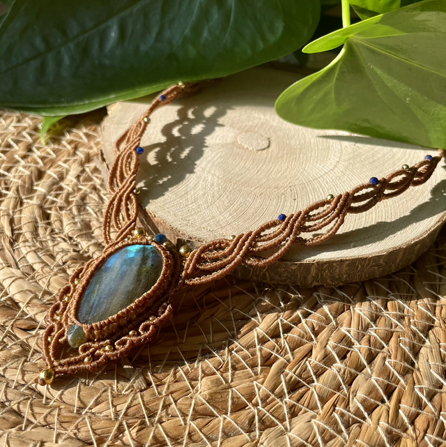 Collier réalisé à la main dans mon atelier du sud de la France avec la technique du micro macramé.