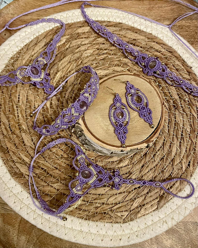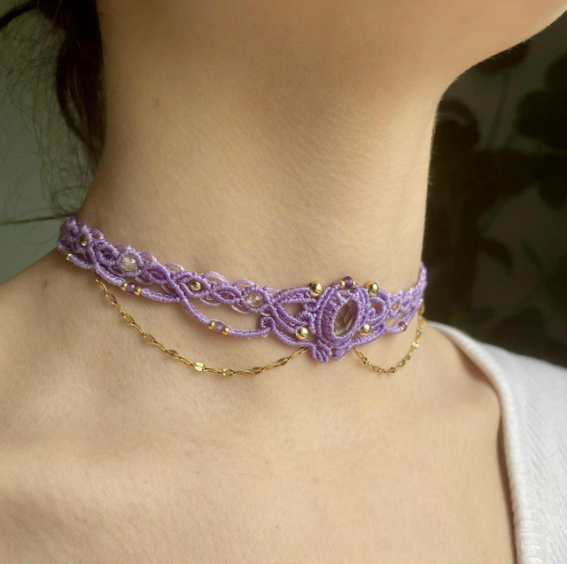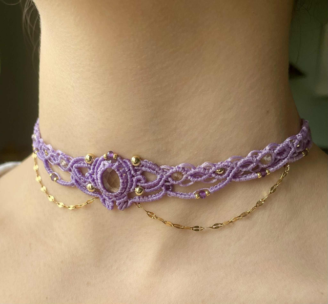 Ras de cou / tiare tissé à la main , dans mon atelier du sud de la France avec la technique du micro macramé .