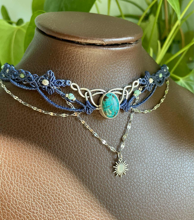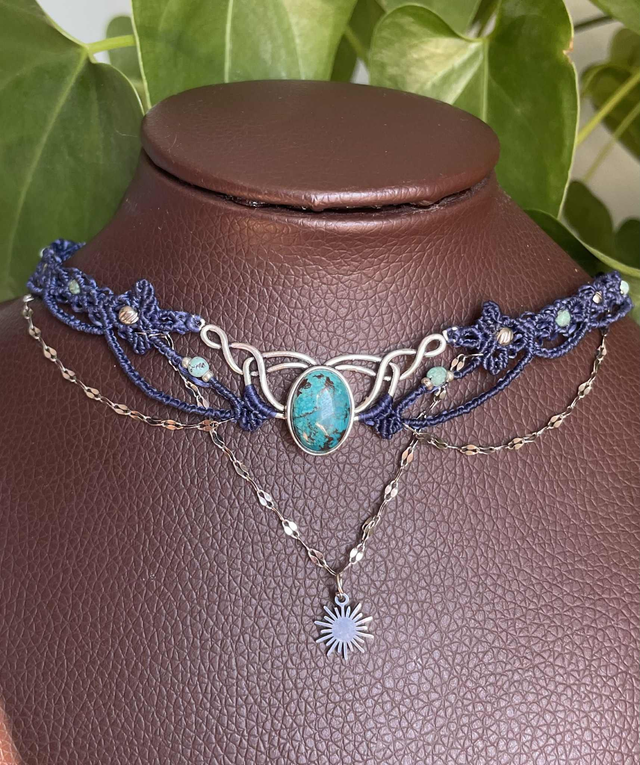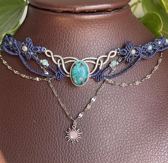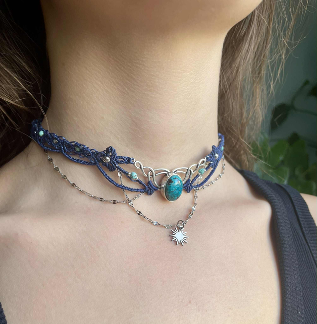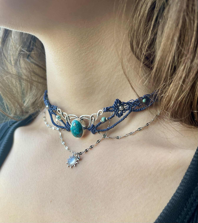 Ras de cou tissée à main en France avec la technique du micro macramé.