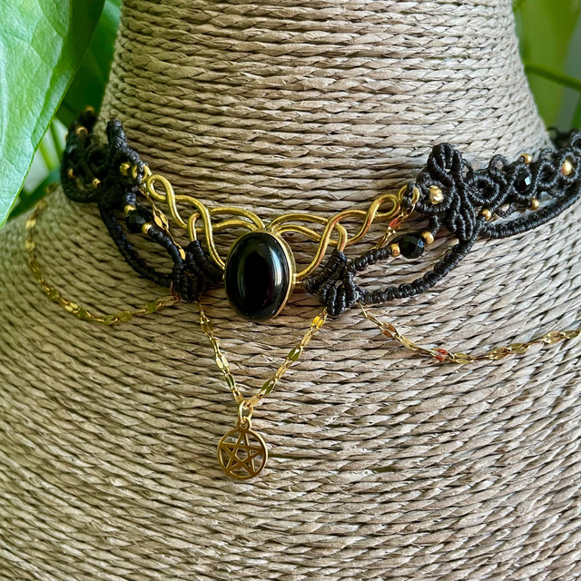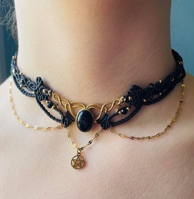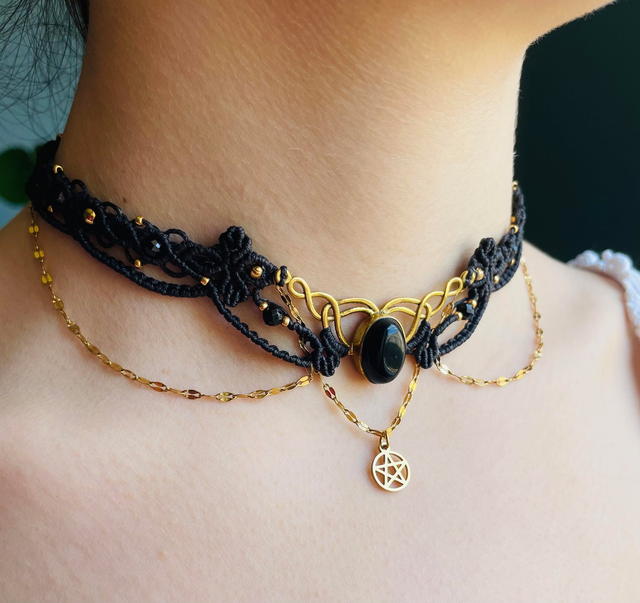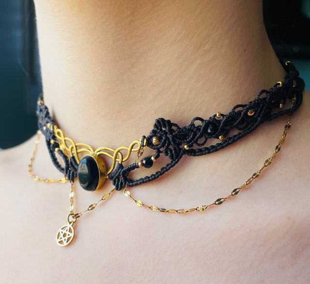 Ras de cou tissée à main en France avec la technique du micro macramé.