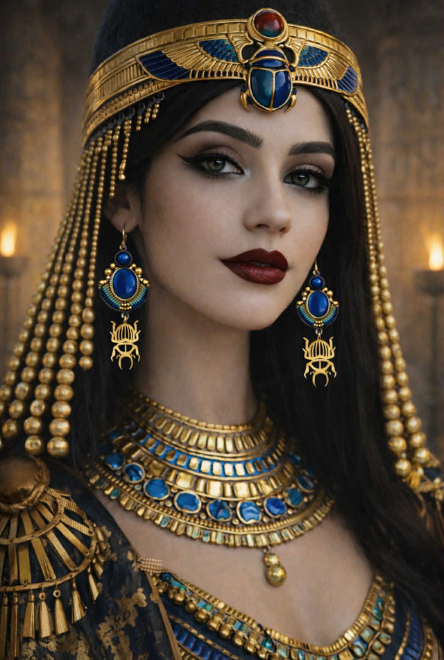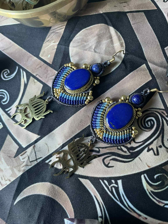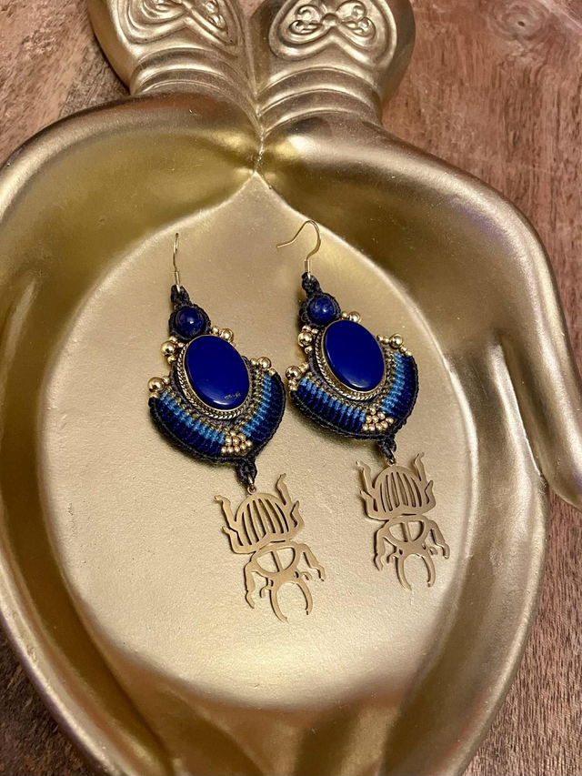 Des perles de lapis lazuli sont intégrées dans le tissage.