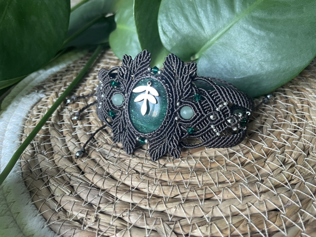 Manchette tissée à la main en France avec la technique du micro macramé , son nom Thalwë signifie Esprit de la forêt.
