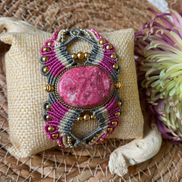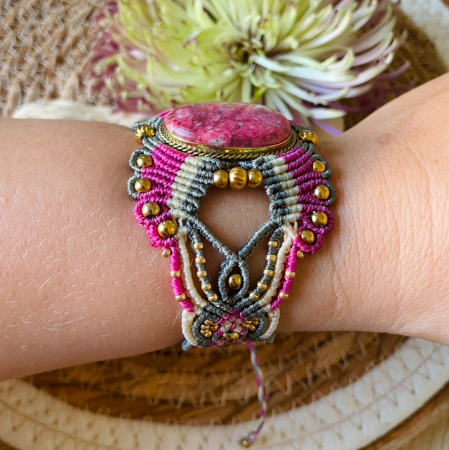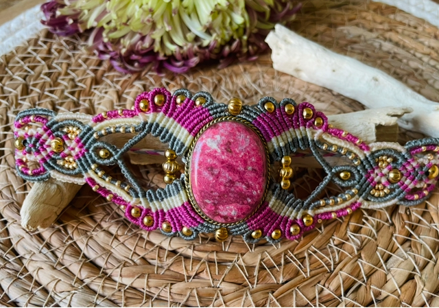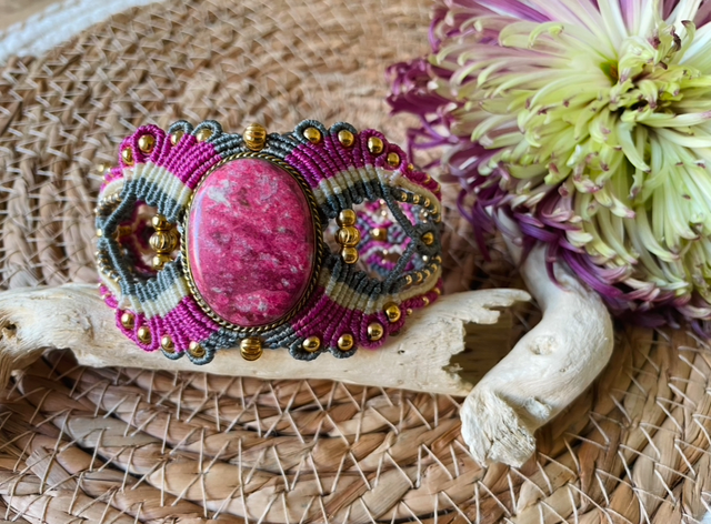 Manchette tissée à la main en France avec la technique du micro macramé.