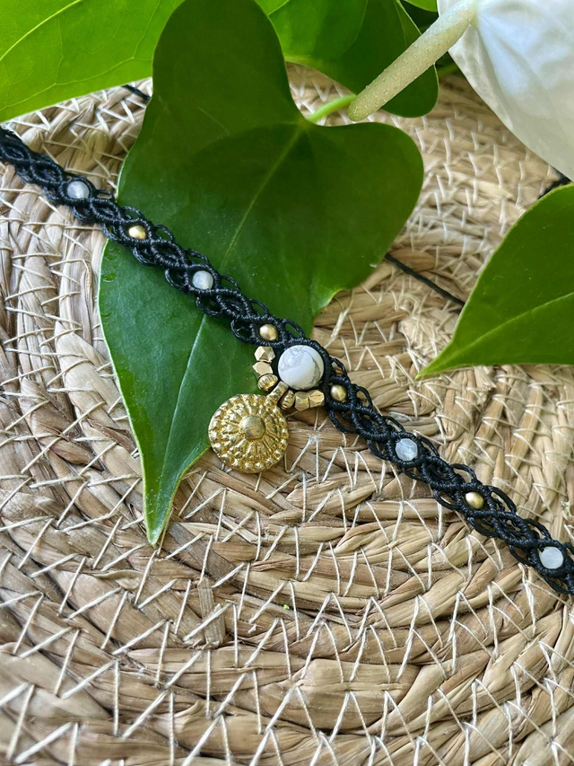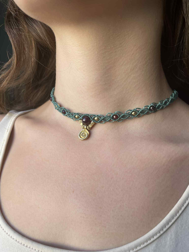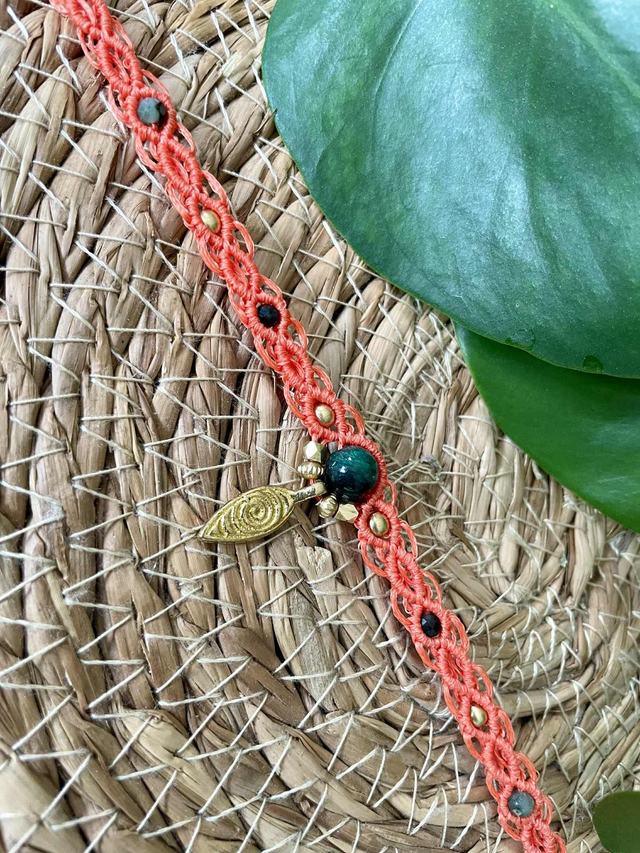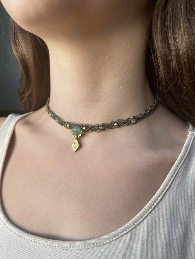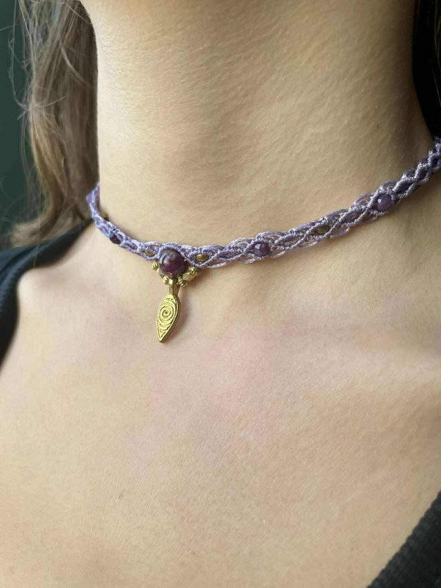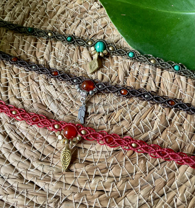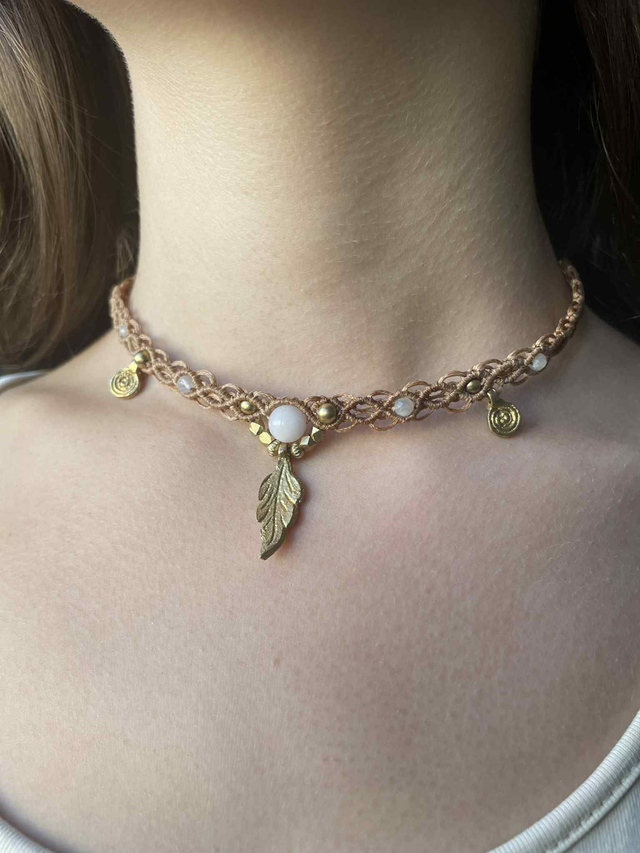 Ras de cou tissé à la main , dans mon atelier du sud de la France avec la technique du micro macramé.