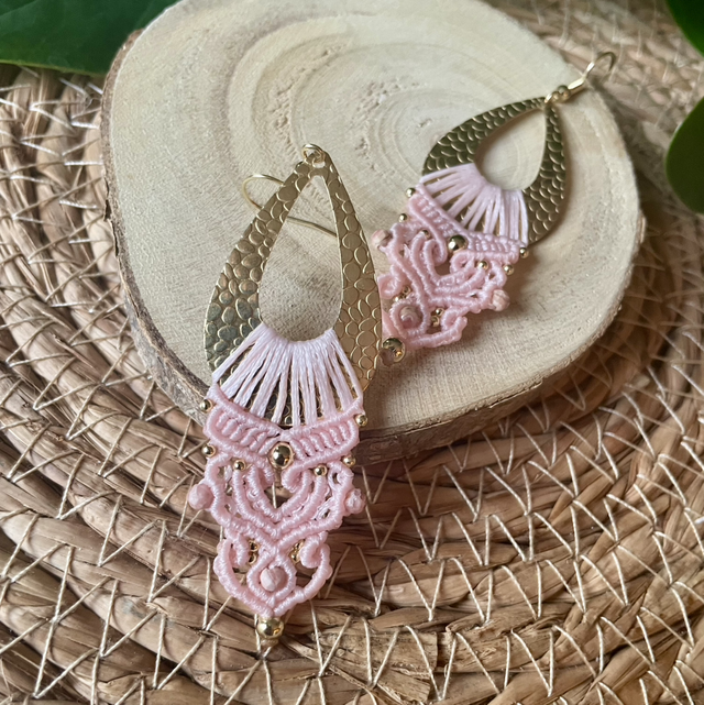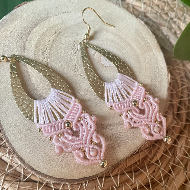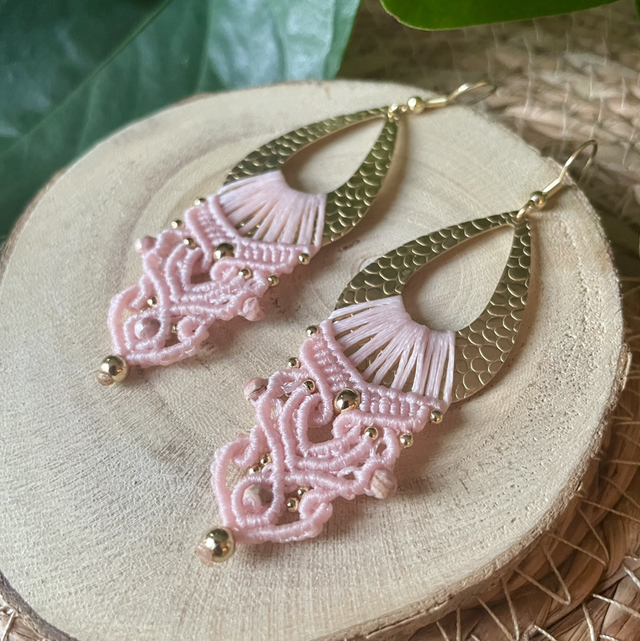 Le fil utilisé est in fil plat de 0,8mm rose poudré apposé sur des structures en laiton doré .