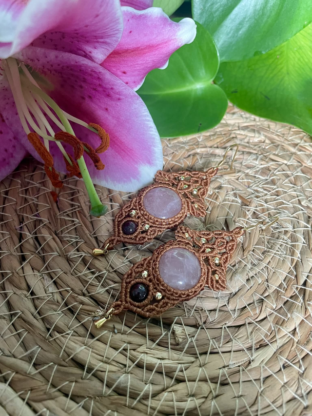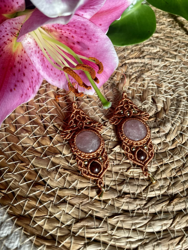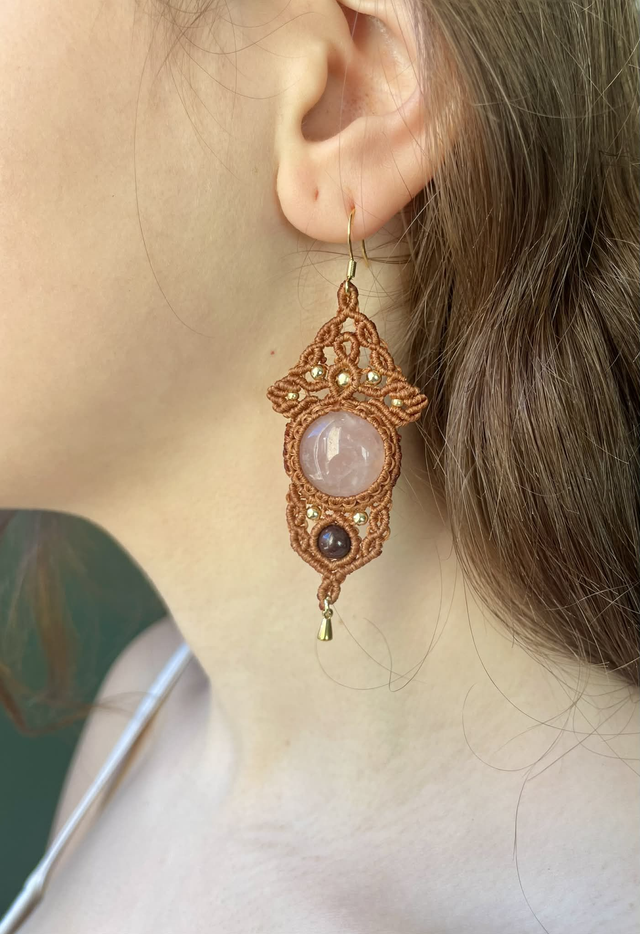 Boucles d'oreilles tissées à la main en France avec la technique du micro macramé.