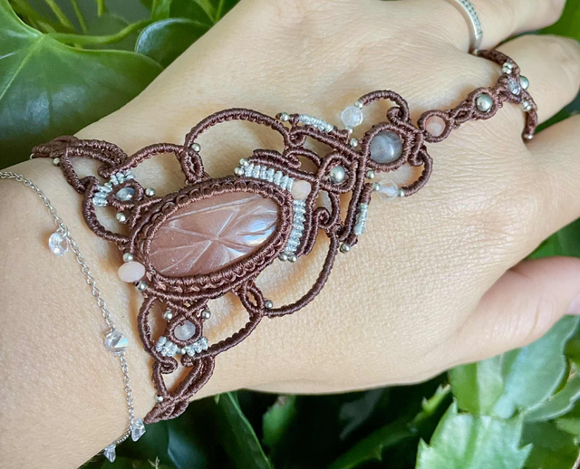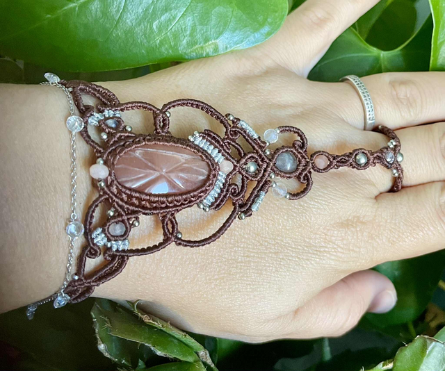Bijou de main tissé à la main , dans mon atelier du sud de la France avec la technique du micro macramé .