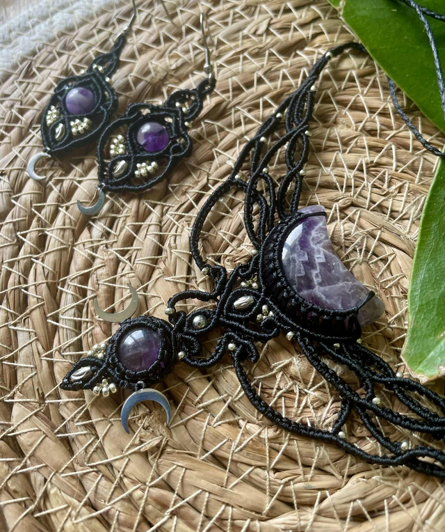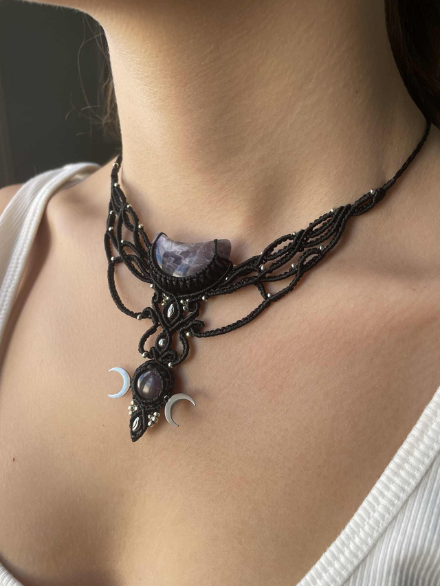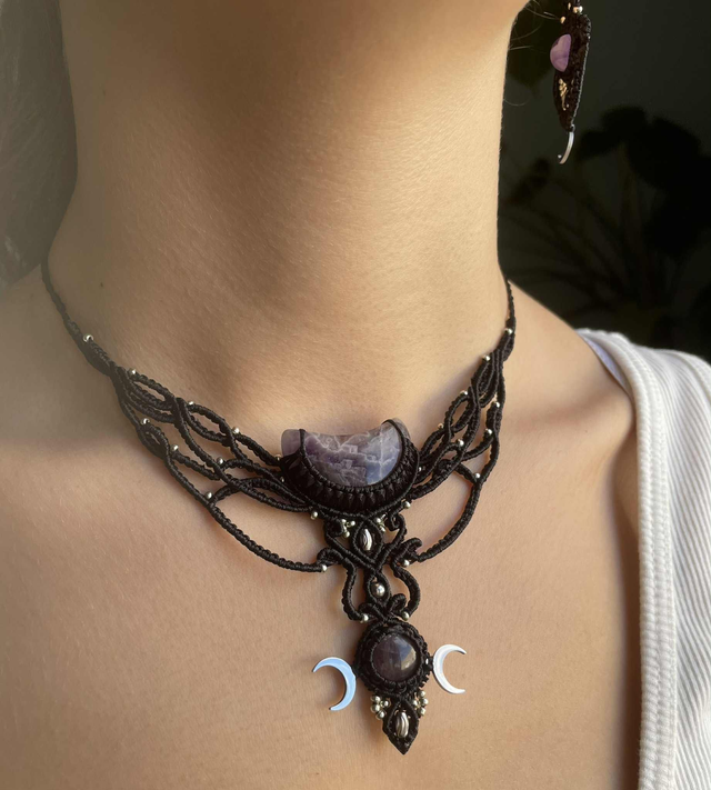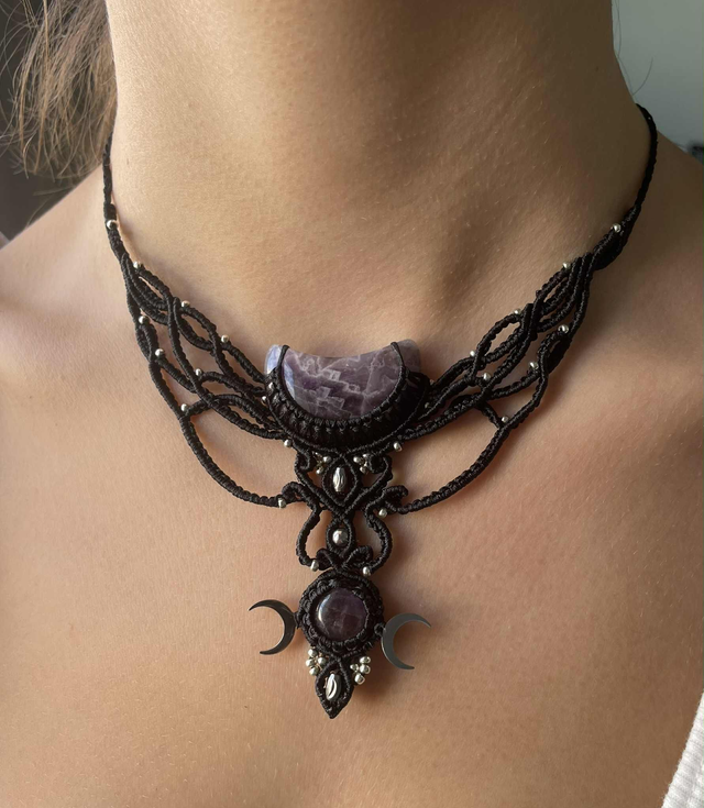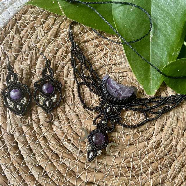Collier tissé à la main , dans mon atelier du sud de la France avec la technique du micro macramé .