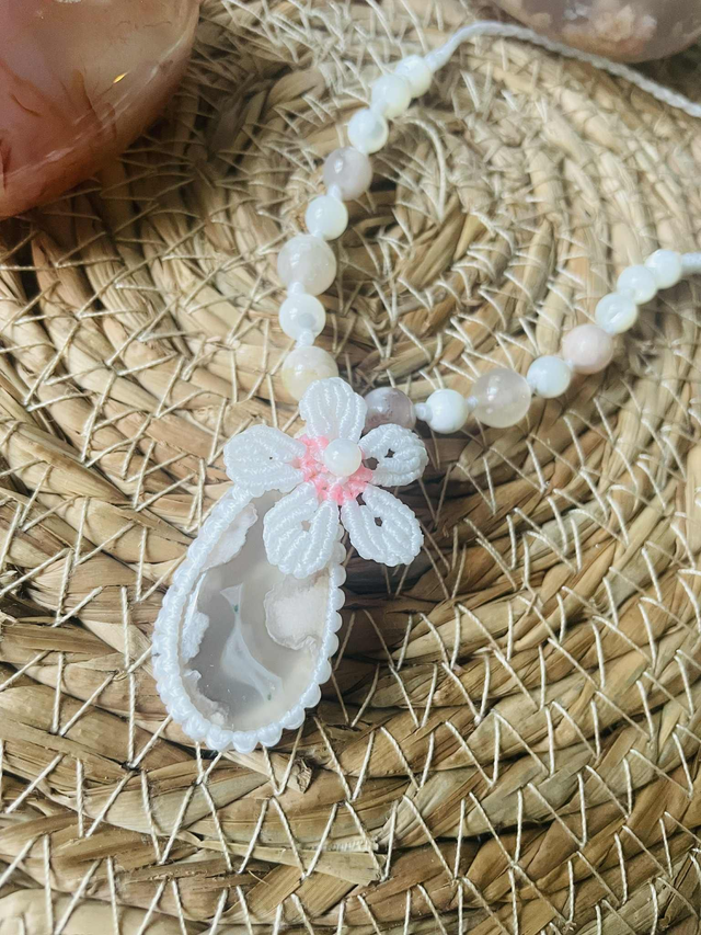 Collier tissé à la main , dans mon atelier du sud de la France avec la technique du micro macramé .